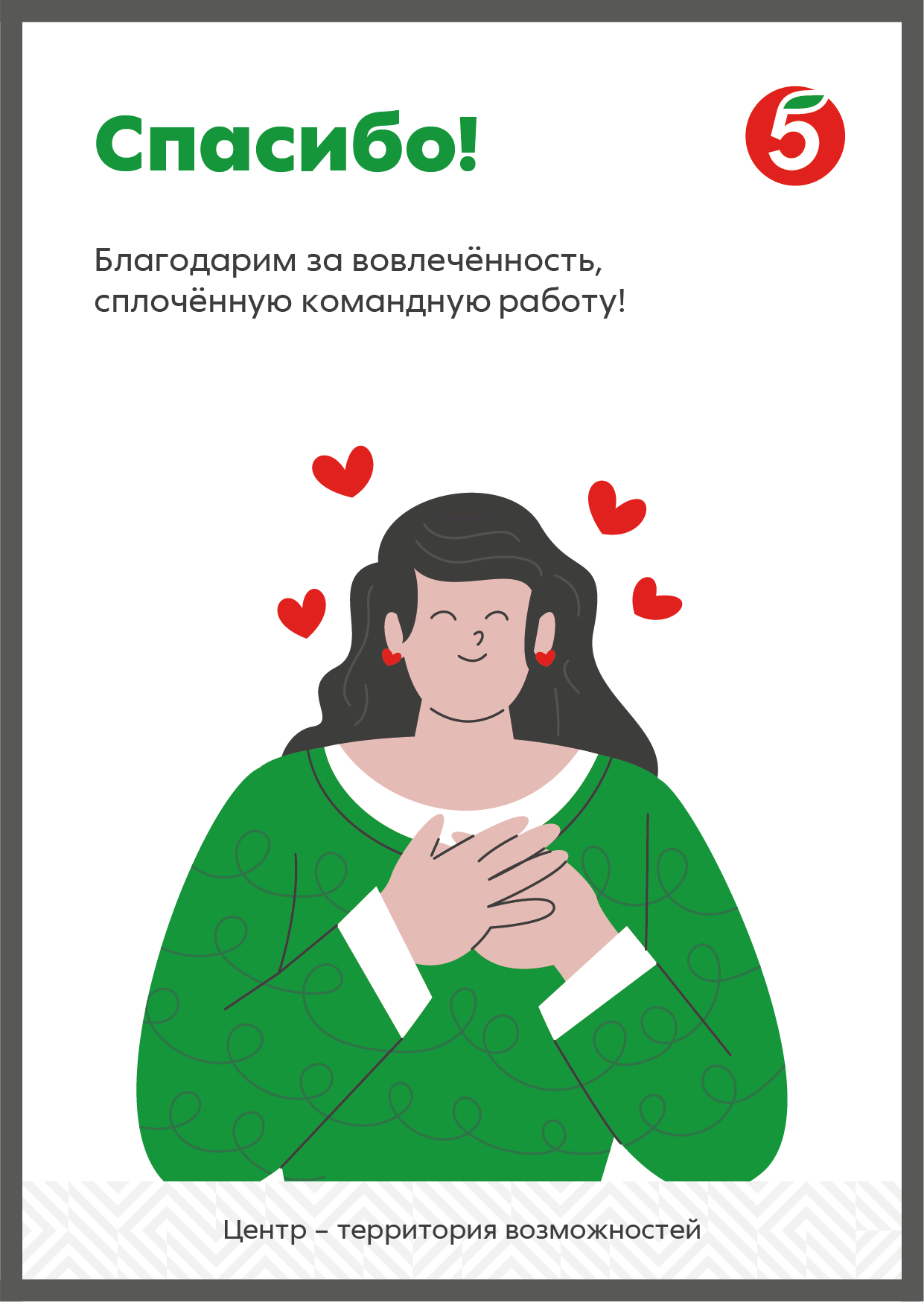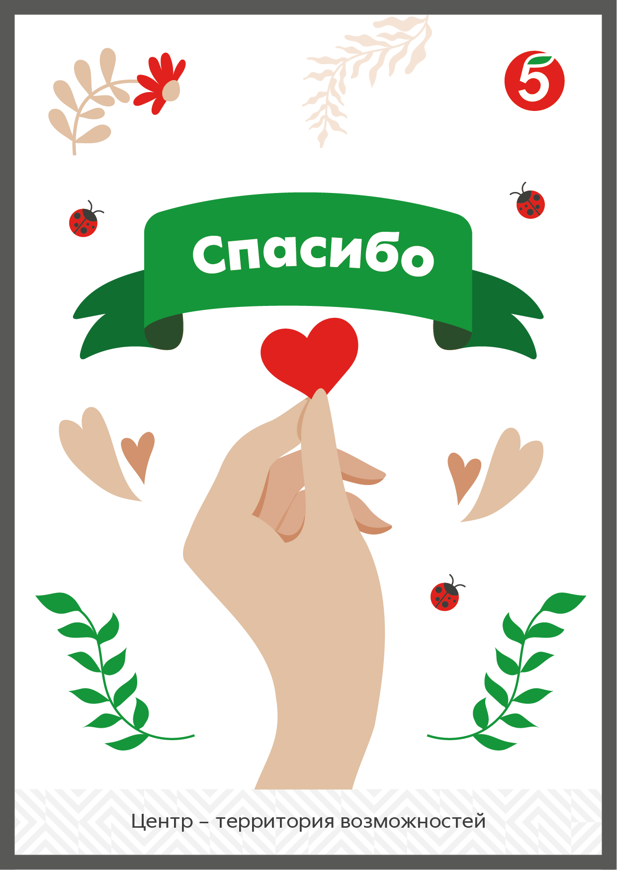 “Пятёрочка” is a Russian chain of grocery stores. The company gave the task to develop several informational materials, namely printed leaflets and postcards. All materials were intended for the company's employees and were supposed to attract attention. Flyers and postcards are designed based on the brand book of the company. Each design layout contains a logo, a corporate pattern and corporate colors. Developing the illustrations, I used different shades of the main colors of the brand.