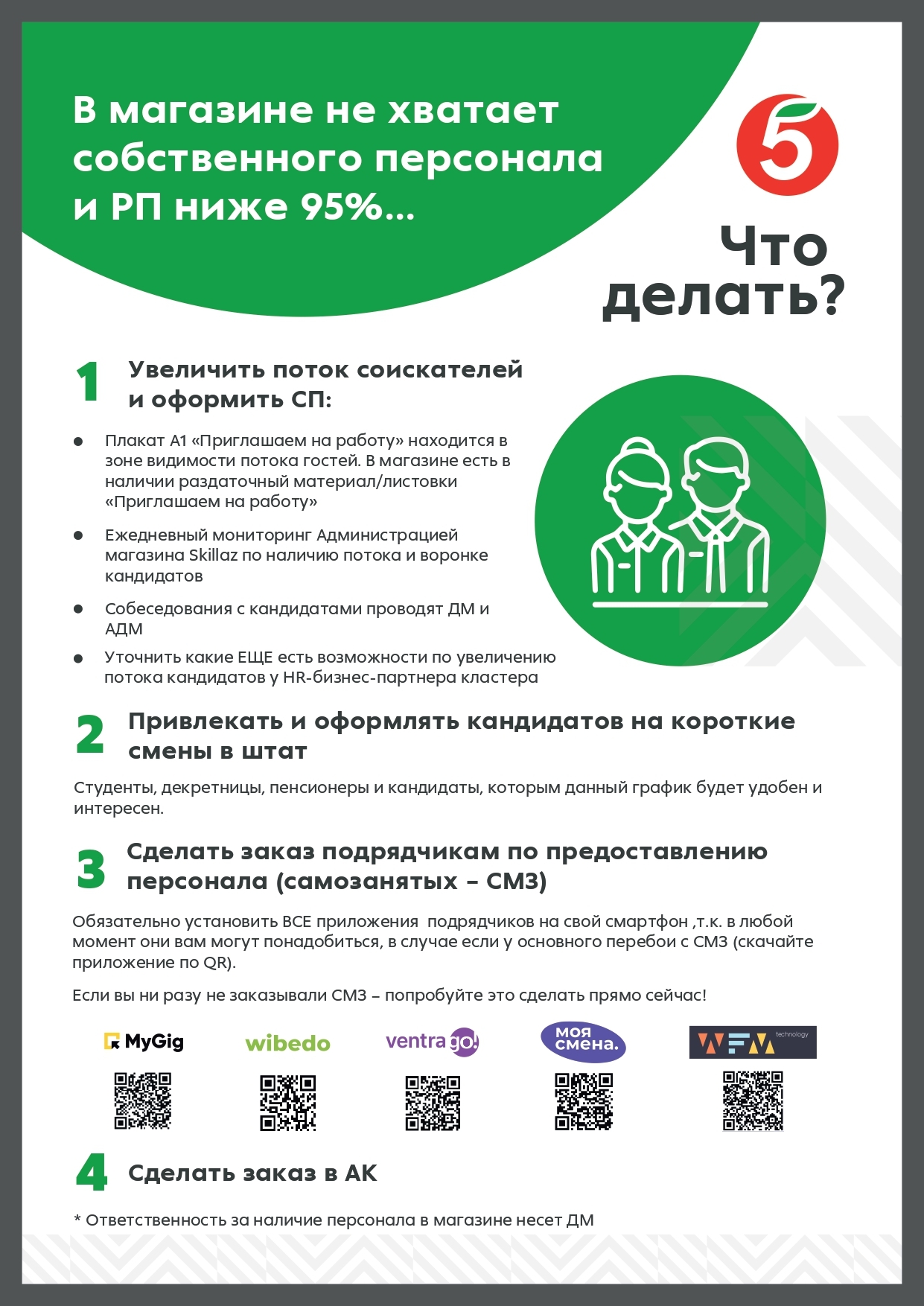 The leaflet is the subject of informing the store administration how to correct the situation with incomplete staffing. A leaflet without complex design elements, with a clear understanding of step-by-step actions in this case.